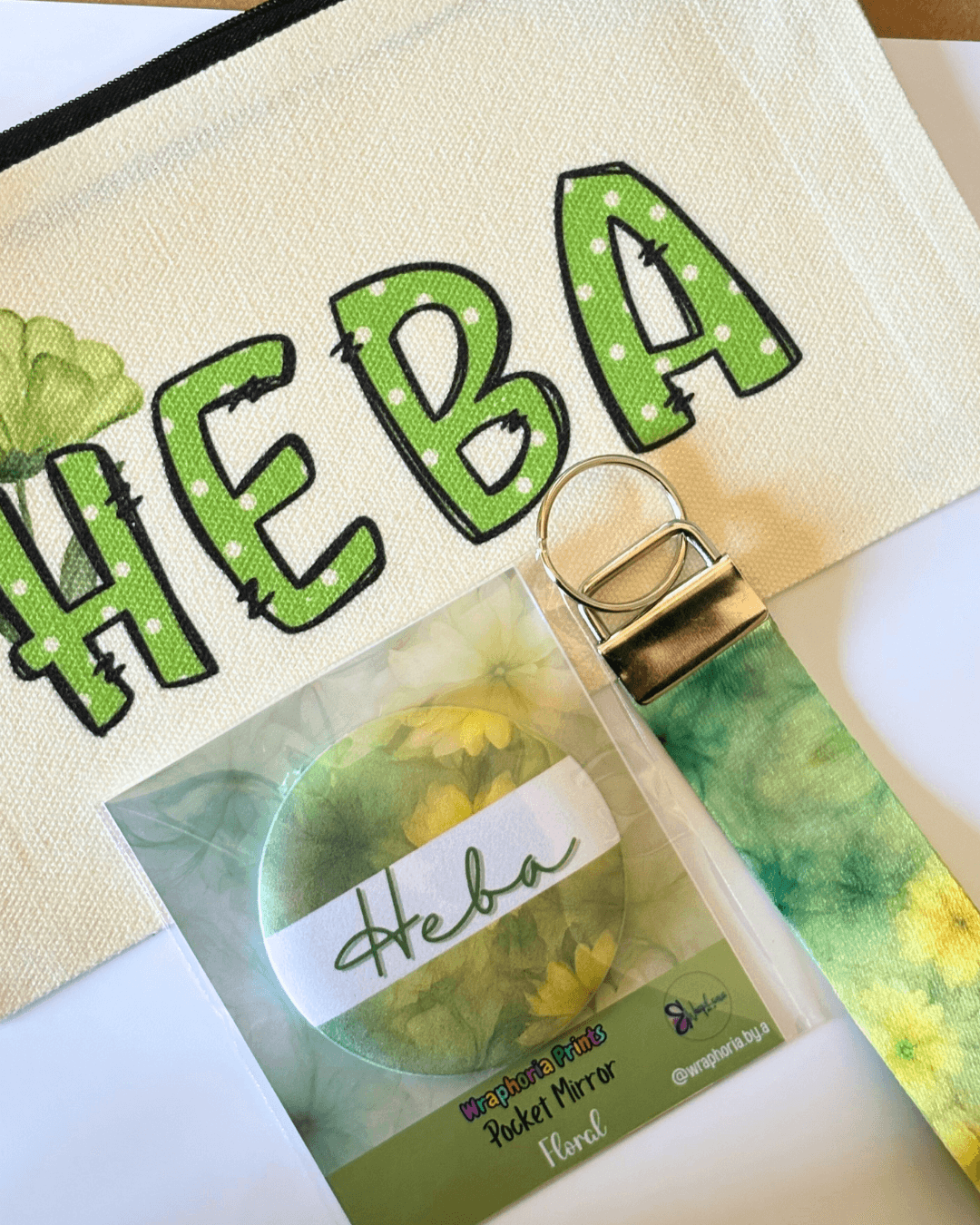 A Set of Customized makeup bag, a pocket mirror & a wristlet strap. (You can choose the theme / color)